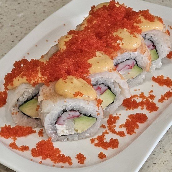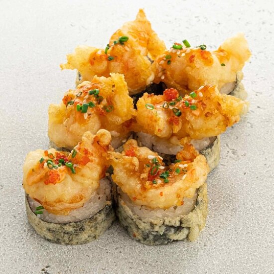 Ingredientes: Gambas, pepinos, Pan rallado Panko, caviar de salmon