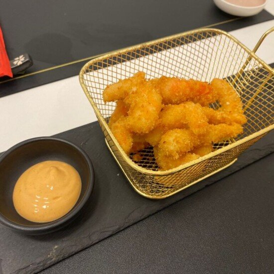 Langostinos fritos con salsa